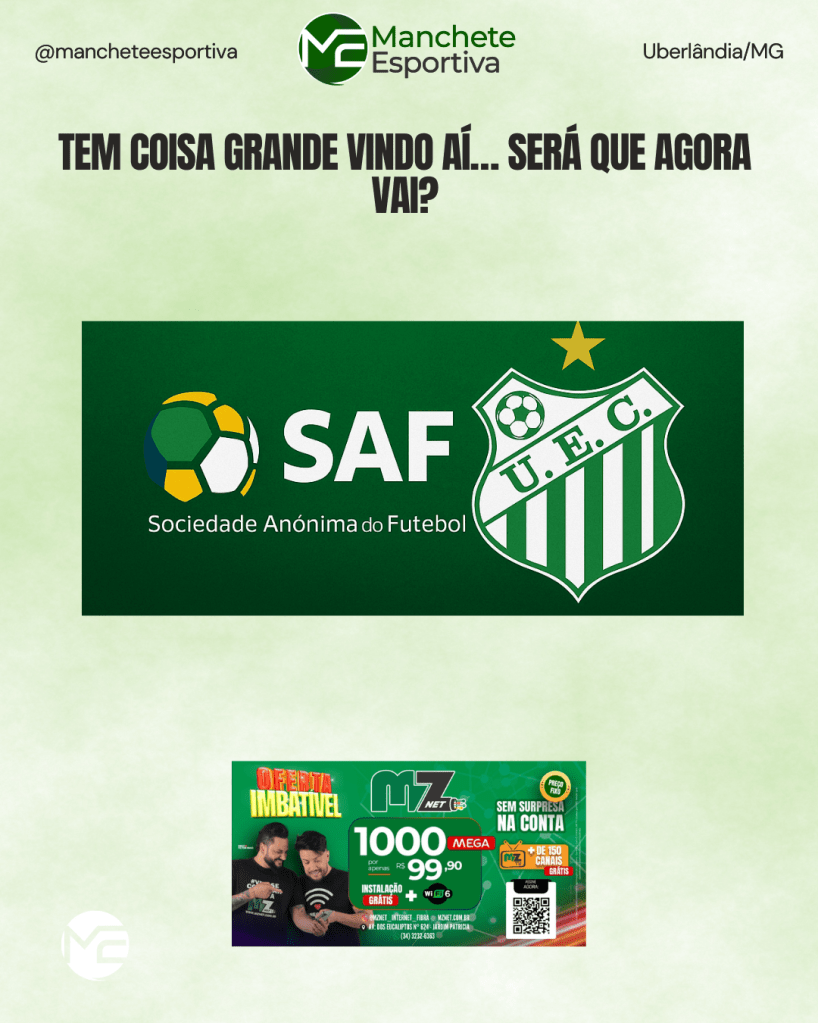 Um empresário deve desembarcar em Uberlândia na próxima semana para tratar da SAF no Verdão. Fontes apontam que os investidores são gente grande: nomes de peso do futebol, do meio empresarial e até do mundo artístico. Pela primeira vez, parece que tem coisa séria vindo aí.