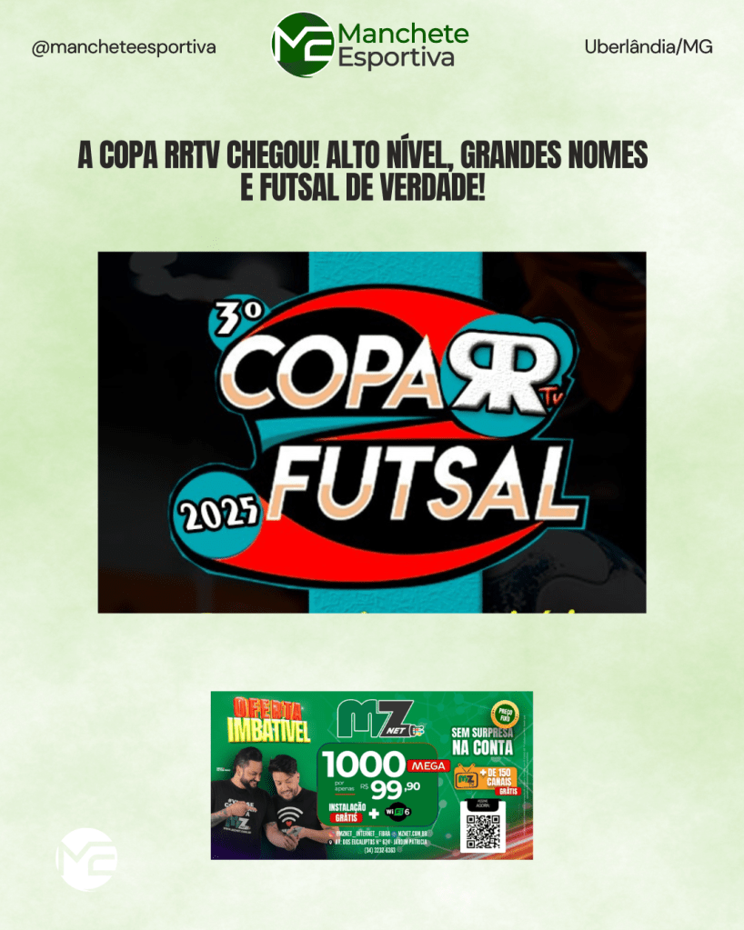 A cidade de Uberlândia está sendo palco de mais uma grande celebração do futsal regional. Com a participação de 20 equipes de 8 cidades diferentes, a 3ª Copa RRTV “Inovação Uniformes” Futsal promete ser a maior edição do torneio até aqui. Os jogos estão sendo disputados na tradicional Quadra Rubinho Sports, com transmissões ao vivo pela RRTV Esportes, levando emoção e qualidade a quem acompanha de casa.