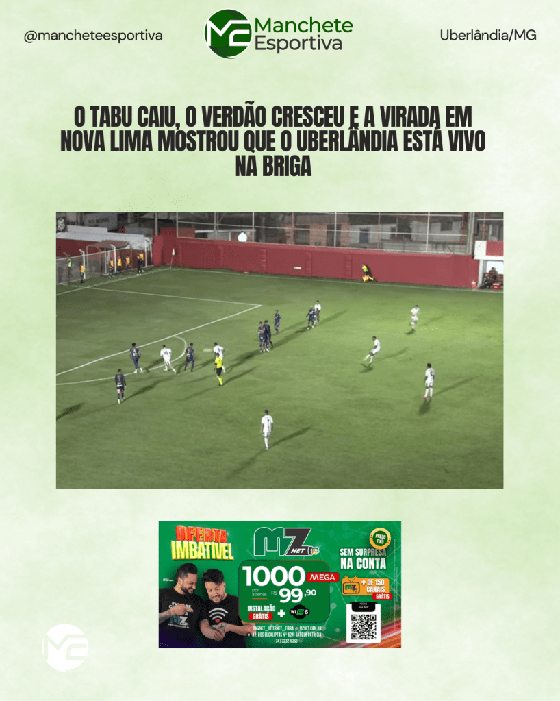 O Uberlândia Esporte Clube conquistou uma vitória maiúscula na tarde deste domingo ao bater o Itabirito por 3 a 1, de virada, em Nova Lima, pela quinta rodada da Série D do Campeonato Brasileiro. O resultado encerra um jejum incômodo: até então, em cinco confrontos com o Itabirito, o Verdão jamais havia vencido — eram três empates e duas derrotas.