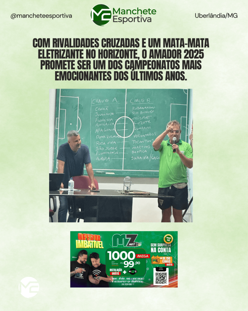 A Liga Uberlandense de Futebol definiu, em reunião nesta segunda-feira, o regulamento da Divisão Especial do Campeonato Amador 2025. A principal novidade está na forma dos confrontos da primeira fase: os 20 clubes foram divididos em dois grupos com 10 equipes cada, mas os jogos serão disputados em sistema de cruzamento entre as chaves — ou seja, os times da Chave A enfrentam apenas os da Chave B na primeira fase.